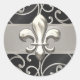 Black and Silver Filigree Swirls Fleur de Lis Classic Round Sticker