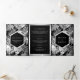Black and Silver Foil Tropical Palm Wedding Tri-Fold Invitation