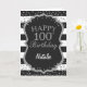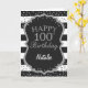Black and Silver Glitter confetti 100th Birthday Card with personalized name. For further customization, please click the "Customize it" button and use our design tool to modify this template.