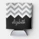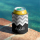 Black and Silver Glitter Print Chevrons and Name Can Cooler