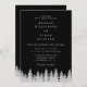 Capture the sleek elegance of a winter wedding with this black and silver invitation, perfect for a seasonal celebration. Featuring a rich black background and silver pine tree silhouettes, this invitation embodies modern sophistication for a winter wedding. Ideal for couples seeking a chic, contemporary aesthetic, it blends woodland charm with refined script typography for a polished touch. Whether you’re planning a glamourous winter soirée, a modern barn celebration, or a stylish forest-inspired event, this invitation beautifully sets the stage for a memorable winter wedding. This custom modern wedding design can easily be personalised with your own wedding details.
