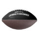 Wedding football done in a silver glitter look printed on the bottom top of the ball, with custom text reading Touchdown. The top half of the top of the ball, is done in solid black, with custom white text. Personalise the text with bride and groom's names, wedding date, and any message you want. Great gift idea to the newly wed couple.