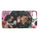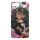 Phone case with Black and Tan Cavalier king charles spaniel art design, floral background in pink colours. Roses, carnations. Makes a great gift for Cavalier lovers. Dog phone case. Available in multiple options.