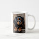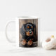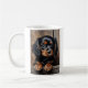 The image depicts Cavalier King Charles Spaniel puppy with black and tan fur. Cavie is sitting in a row, looking directly at the viewer. The puppy have large, expressive eyes and fluffy ears. The background is a soft, blurred brown, creating a warm and inviting atmosphere. The painting style is realistic, capturing the details of the puppys' fur and features.