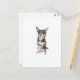 Ink and watercolor Black and Tan Chihuahua design. This is a lively, expressive and illustrative drawing with line, benchmarks and splatters caused by the vigourous use of a traditional dip pen and colour Splashes, this gives the Artwork a fresh and immediate style where my 'working out' can be seen and enjoyed. It is always my aim to express an element of quirky character in the Animals I portray in order to bring a smile to your face, I hope my mission has been accomplished. The text on this can be altered for a specific card, and it can be personalised or removed