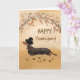 You can send this card to greet anyone a happy Thanksgiving. The dog and background are done in watercolor adding an artistic fall touch.The front shows a cute black and tan dachshund. This will be perfect to give to any dog lover out there. Get your copy now.