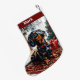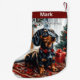 Add a festive touch to your mantel with this charming Christmas stocking featuring an adorable Dachshund in a cozy holiday scene. The design showcases the Dachshund in a red bowtie, sitting next to a beautifully decorated Christmas tree, surrounded by gifts and a warm, glowing fireplace. The cheerful message "Merry Christmas" is beautifully displayed, making this Christmas stocking perfect for spreading holiday joy. Hang this delightful Christmas stocking for a warm and inviting holiday display that dog lovers and Dachshund enthusiasts will adore! generativecontent