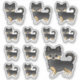 Destei's original cartoon illustration of a black and tan long coat Chihuahua breed dog. The design is placed 12 times on the sheet in three different sizes. There is one bigger dog, three medium size dogs and eight small size dogs.