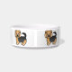 This is a heavy, durable bowl decorated with Tibbies of many colors, the perfect size for hungry/thirsty Tibs. The design is interesting and printing clear.
