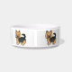 This is a heavy, durable bowl decorated with Tibbies of many colors, the perfect size for hungry/thirsty Tibs. The design is interesting and printing clear.