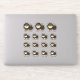 Destei's original cartoon illustration of a cute black and tan coat colour Pomeranian breed dog. The dog design is placed 15 times on the sheet. The top three ones are slightly bigger than the rest of the 12 other ones.