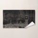 Hand towel printed with a gritty, grungy Venetian skyline featuring the famous bell tower of St. Mark's Square and the domes of Basilica San Marco. Rough grit and dry brush strokes in distressed tones of taupe and black produce a dark grunge texture. Transparent areas within the design allow your custom background colour to show through. Edit to create weathered Venice, Italy art hand towels colour-matched to your space. ♡ Idyllfire