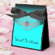 Elegant diamonds black and teal blue sweet sixteen birthday party favour boxes. You can add the text of your choice, delete the text, choose your font style and colour, and change the background and ribbon colour on this beautiful black and teal blue party favour box.