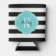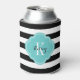 Black and Turquoise Preppy Stripes Monogram Can Cooler