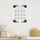 © Sunny Mars Designs - Floral Hibiscus: Black on White Wedding Seating Charts For Twelve Tables - Trendy, stylish, modern, elegant, classy custom Gothic wedding table seating chart template with beautiful Goth black swirly floral tropical hibiscus design.