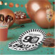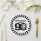 Black and white 90th birthday paper plate with black and white stripes around the outside rim of the plate and your own photo in the 0 of 90. A great idea to add some personalised fun to a eightieth birthday party. Personalise with your own photo in the 0 of 90 and name. Reads Happy Birthday 90. Graphics by www.mylittleeden.com