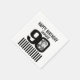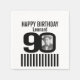 Nintieth birthday photo napkins in simple black and white with stripes. Great idea for adding some fun to a 90th birthday party. Personalise with your own photo in the 0 of 90. Reads Happy Birthday 90. Graphics by Sarah Trett.