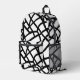 This backpack features a striking and modern design, perfect for those who love bold and graphic styles. The base colour of the backpack is a clean, crisp white, overlaid with a black abstract grid pattern. This grid creates a series of irregular polygonal shapes, giving the backpack a unique and eye-catching appearance.