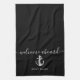Black And White Anchor Boat Name Welcome Aboard Tea Towel