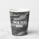 Black and white army camo camouflage print custom Paper Cups. Disposable party supplies with grey pattern. Double sided print. Fun for Birthday, BBQ, military wedding, going away party and more. Great for coffee and other drinks. Also available in green by removing the b/w filter.
