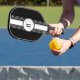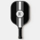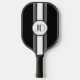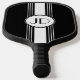 This pickleball paddle is decorated with a black and white Art Deco style monogram design