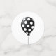 A cute axolotl and birthday balloons themed personalised birthday party confetti with photos, age and name with black and white balloons with polka dots and an axolotl with birthday gifts and balloons.