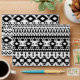 Beautiful vector illustration inspired by tribal Aztec patterns featuring triangles,other polygonal shapes and chevron. Elegant, modern patterned design in black and white monochrome colour palette. Decorative, elegant, trendy gift for her.