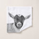 Black and white baby goat bath towel. Cute farm animal portrait. A range of modern photography design for animal lovers. Great for yourself or as a gift! Personalise it by adding your own name or other text to it. See my store for more items with this image.