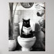 Black and White Bathroom Cat Print, Funny Posters, Poster