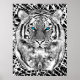 A blue eyes wild Tiger face Portrait in black and white Style design.