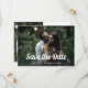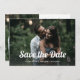 These trendy and vintage style wedding save the date cards feature retro white script on the front as an overlay on your photo. The back has a black and white background, and another photo, along with a scannable QR code to add your wedding website.