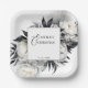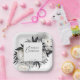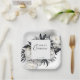 Black and white boho peony flowers pampas grass elegant wedding personalised tableware template paper plates