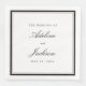 These wedding cocktail napkins feature a simple border of black and charcoal grey lines that frame elegant and easy to personalise couple's names and wedding date text with lots of light and airy white space for that high-end look in line with the new traditional grand millennial style.