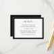 This Black and White Border Details Card is a stylish way to share all the important information your guests need while keeping your wedding stationery beautifully cohesive. A crisp white background framed by a sleek black border provides the perfect canvas for elegant script typography, ensuring every detail is clear and refined. Its minimalist yet modern design complements your invitation suite effortlessly, while personalisation options allow you to update the wording, adjust font styles and sizes, and even change background options to perfectly suit your event. From accommodations and directions to weekend itineraries, this card makes sure nothing is overlooked. Give your guests the clarity they need with a details card that feels timeless, polished, and uniquely yours.