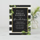 A bold, elegant bridal shower invitation with black and white stripes bordered in lush greenery and glitter confetti.
