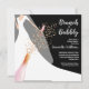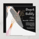 Brunch and bubbly bridal shower invitations feature a bride in her gown and veil on a black background with a sparkling wine bottle, glass and faux sequins and your details in chic white lettering. **TIP: Square size REQUIRES EXTRA POSTAGE. You can CHANGE THE BACKGROUND COLOR to anything with our design tools, just click on Customise further link.
