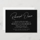 This simple wedding Rehearsal Dinner invitation features elegant script text on a black background.