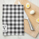Black and White Buffalo Check Monogram Christmas Tea Towel