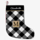 Black and White Buffalo Check Plaid Monogram Small Christmas Stocking