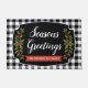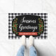 Welcome guests with warmth and holiday cheer using this personalised doormat. The classic black and white buffalo plaid background creates a cosy, rustic feel, while the festive holly accents and elegant "Seasons Greetings" message set a joyful tone. Personalise it with your family name to make it truly your own. This durable doormat is perfect for adding a festive touch to your porch or entryway throughout the holiday season.