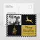 Black and White Buffalo Plaid Gold Holiday Photo Postcard