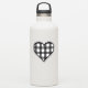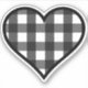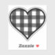 A heart shaped vinyl sticker, filled with a classic black and white buffalo plaid pattern.