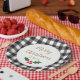White and black buffalo plaid holly Merry Christmas paper plate, which you can easily personalise the year in gold. This would make a great addition to your Christmas party celebration this year.