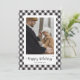 Custom black and white buffalo plaid photo holiday cards. Easily personalise these buffalo plaid photo holiday cards with your photo and family name.