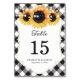 Black and White Buffalo Plaid Sunflower Wedding Table Number
