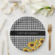 Black and White Buffalo Plaid Sunflowers Paper Plate