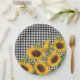 Black and White Buffalo Plaid Yellow Sunflowers Paper Plate
