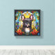 Black and white bulldog artistically done in a faux stained glass window mode canvas print.