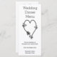 Wedding dinner menu black and white butterfly heart design. Customise this wedding menu with your wedding details. Should you require any help with customising then contact us through the link on this page. Black and white butterfly heart design personalised wedding menu