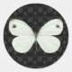 Elegant round sticker / envelope seal done in a black on black floral damask pattern. Digital realism graphics of a white butterfly decorates the middle of the sticker. Customise to add any text you want. Lovely way to finish off your invitation envelopes.